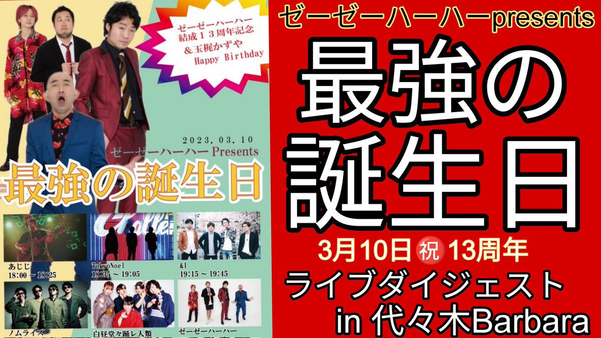 明日の土曜20:00から今月3.10に行われた、ゼーゼーハーハーpresents『最強の誕生日』のLIVEダイジェストをゼーハーちゃんねるで公開します。