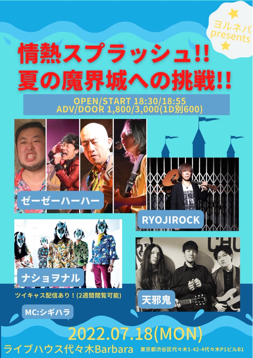 今夜18時から代々木Barbaraの全面協力の元、会場貸し切ってゼーゼーハーハーチャンネルから生配信します。
