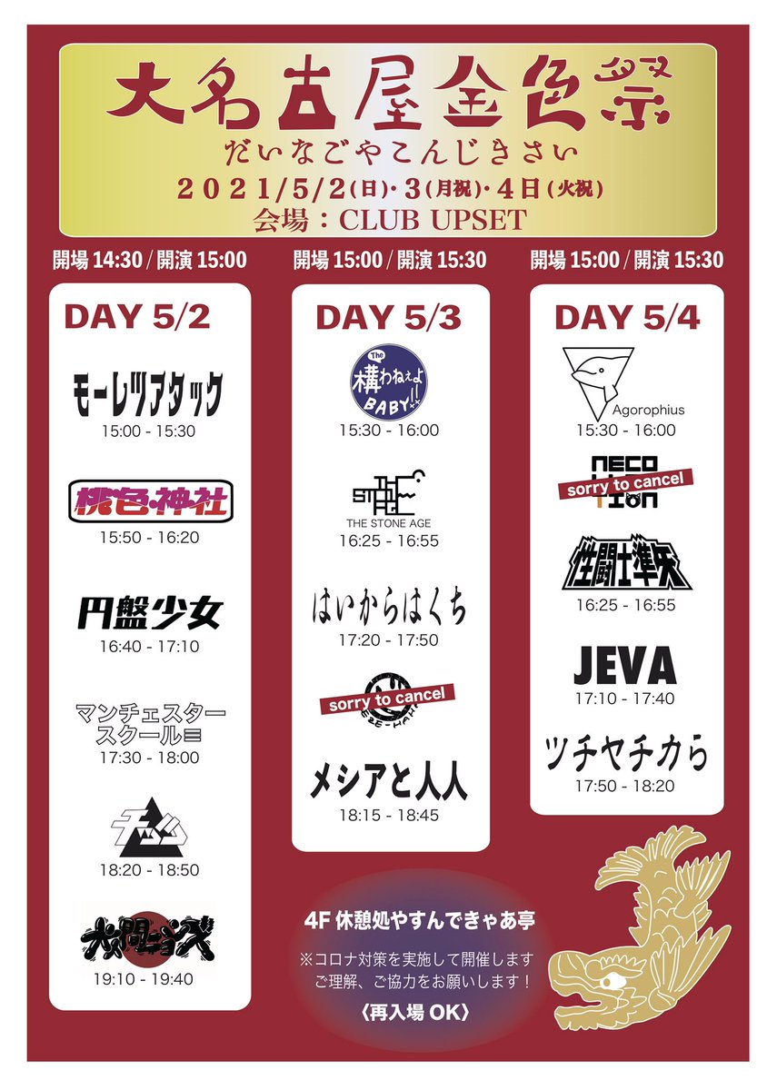 緊急事態宣言発令に伴い、ゼーゼーハーハーは5/3池下UP SETの出演を辞退することにしました!
