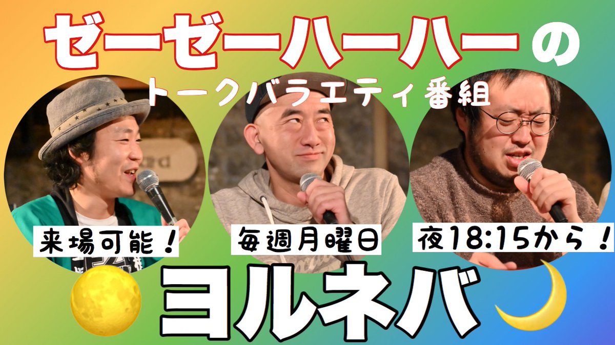 MCは赤坂シュウジ℃さん、代々木Barbara提供のゼーゼーハーハー音楽トークバラエティ新番組『ヨルネバ』でお楽しみ下さい㊗️💿幸せな時間🎧